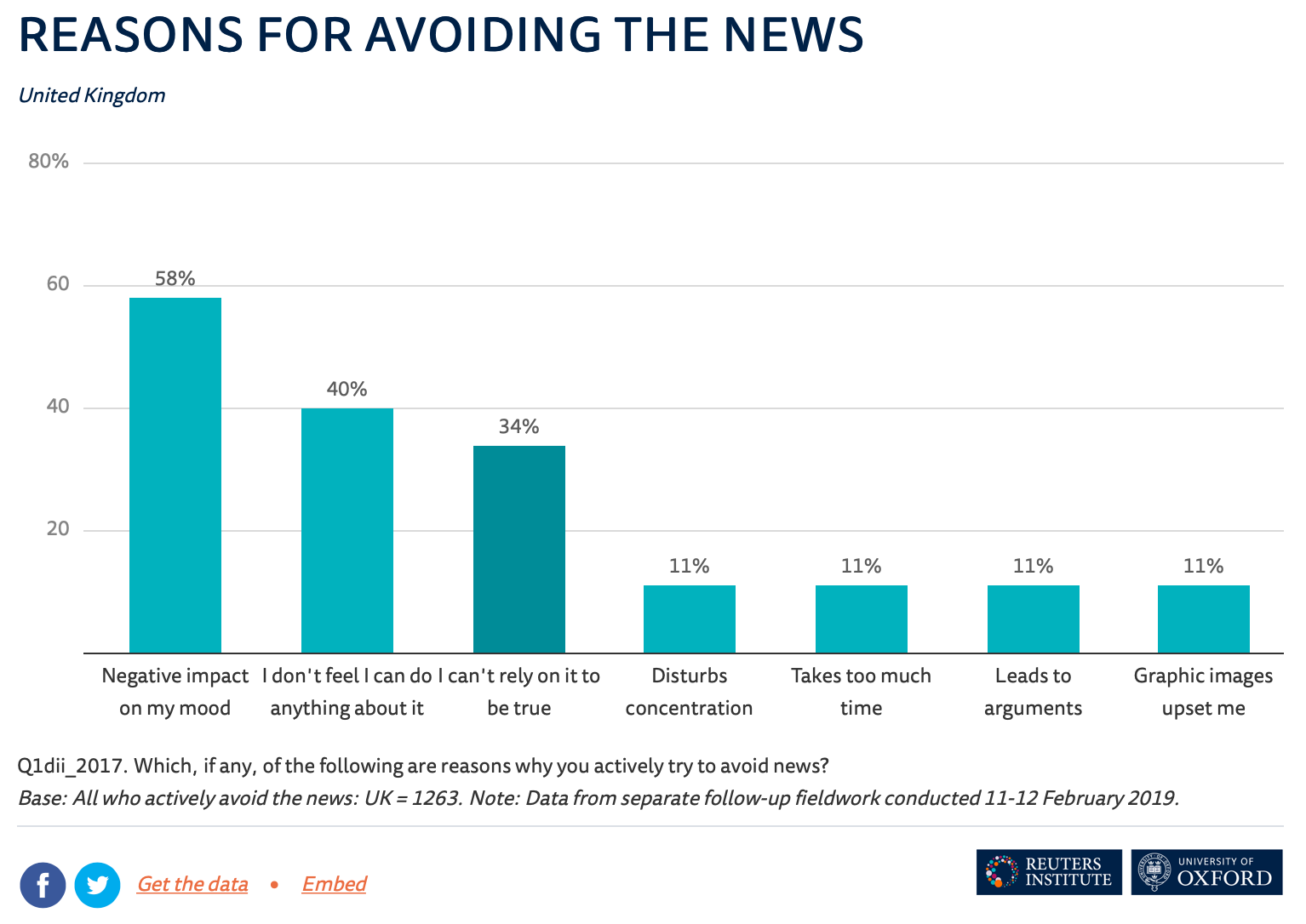 “What is journalism for?” A journalist friend asked us at Newsgeist, not rhetorically. Back to basics. We have to ask ourselves because our audiences are asking us. When I highlighted the finding that one in three people say they actively avoid the news and asked the LinkedIn membership for their own experience, more than 170 comments came in. While some brought up bias and lack of trust, another reason came up again and again – value. Why should I do this to myself? readers asked. What does news bring to my life that warrants the amount of anger and anxiety it causes? Until we’re able to convincingly answer that question, people will keep tuning out.